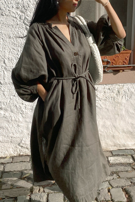 VALERIE OLIVE LINEN DRESS