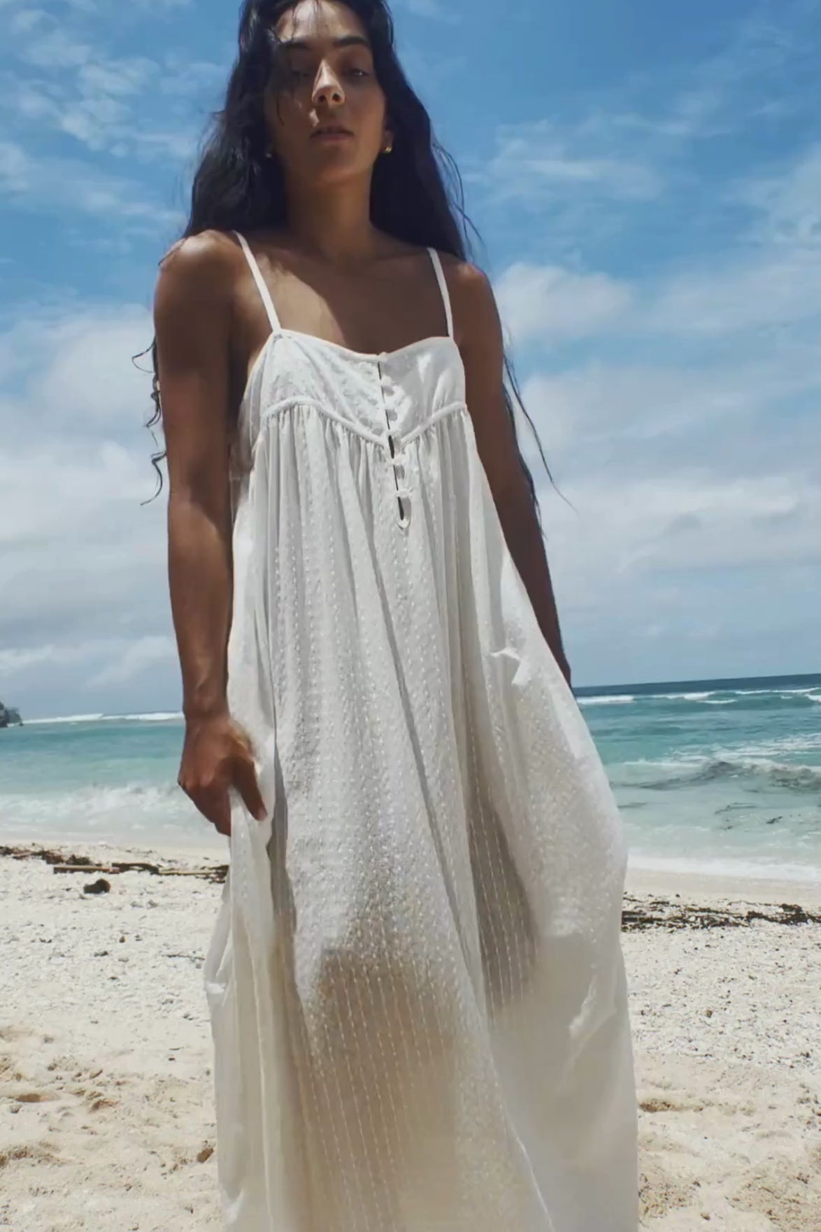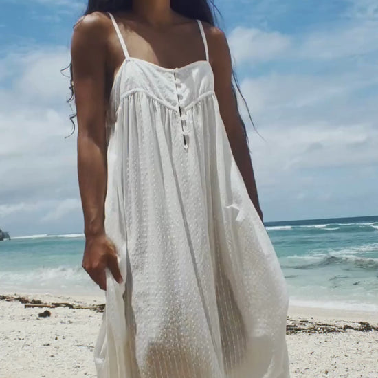 BEATRICE Cotton Dress - your dreamy, throw on and go cotton midi dress with just the right amount of detail. Made from soft, lightweight 100% cotton with all-over embroidery, she’s floaty, breathable, and made for long summer days. Featuring adjustable straps, front corozo buttons and a relaxed fit that’s bra and curvy-bust friendly, Beatrice is easy to wear and easy to love.